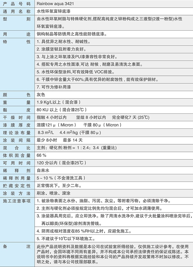 3421水性環氧富鋅底漆