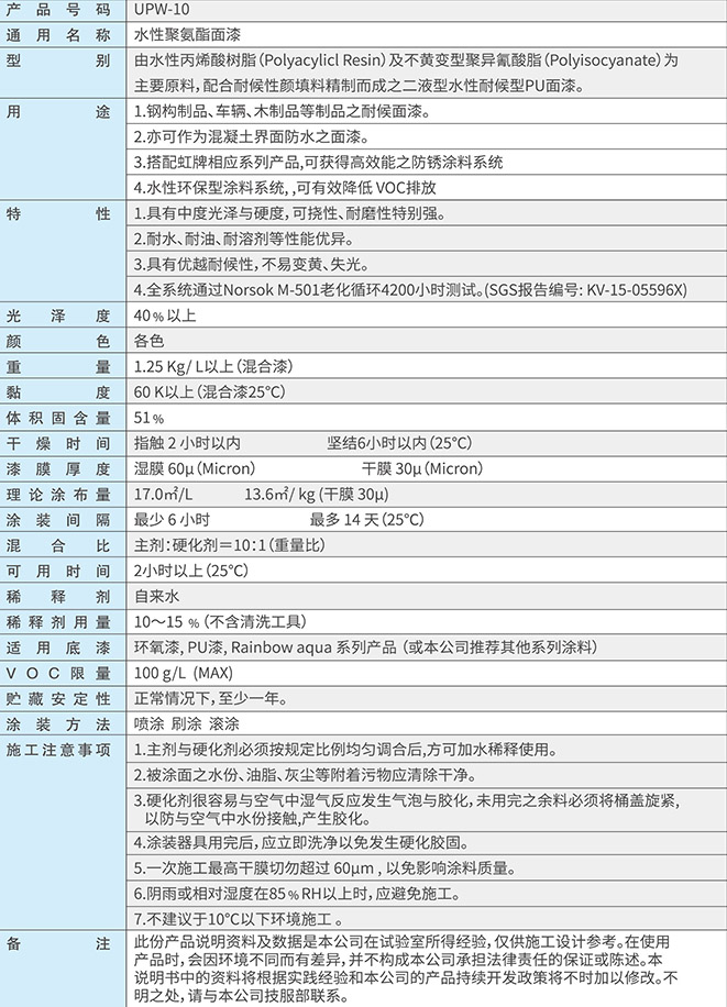 UPW-10水性優麗面漆